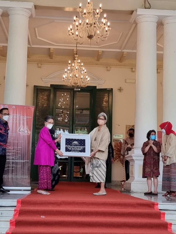 Penghargaan juga diberikan kepada Ibu Ratmini Gandasubrata Soedjatmoko (97 tahun) atas peran sertanya mewujudkan logo Himpunan Wastaprema dan upaya dalam pelestarian wastra Nusantara hingga kini.